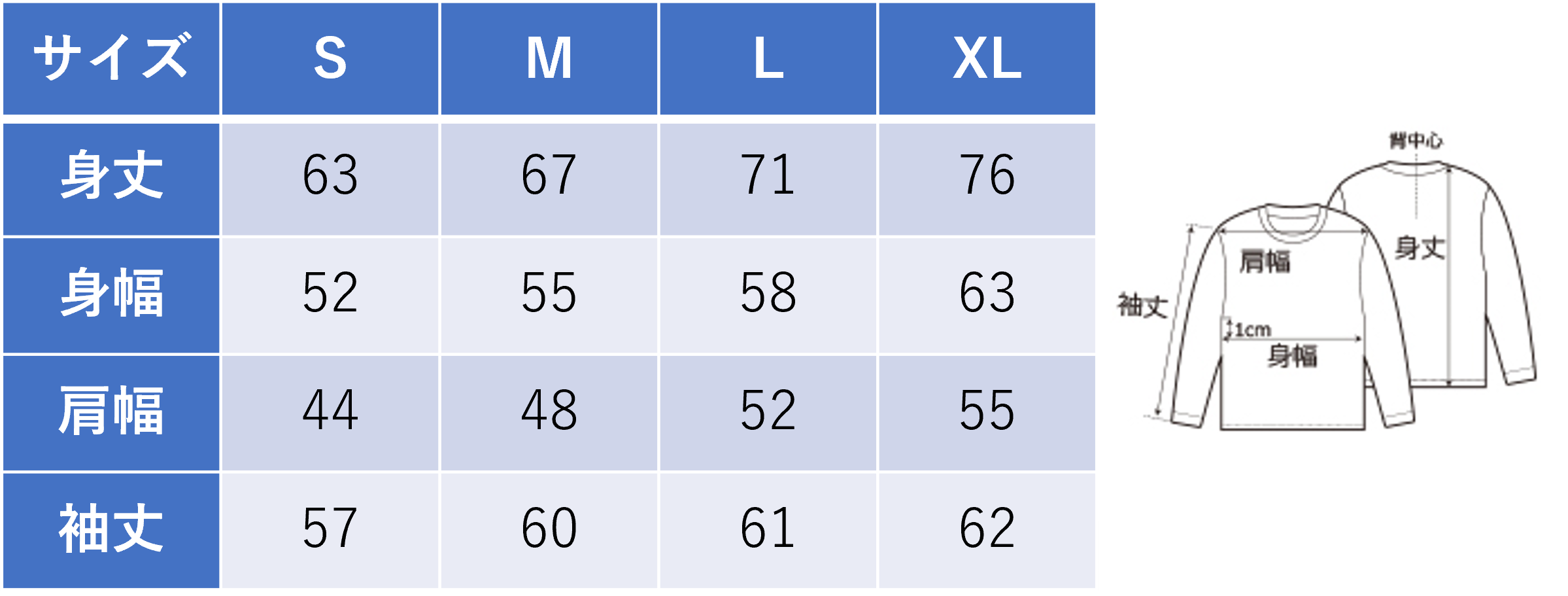 XL→76/63/55/62